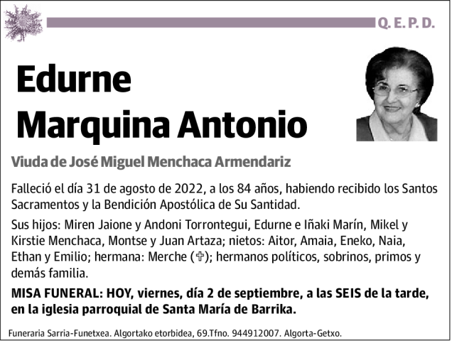 Esquelas en Barrika : Ultimas defunciones de HOY