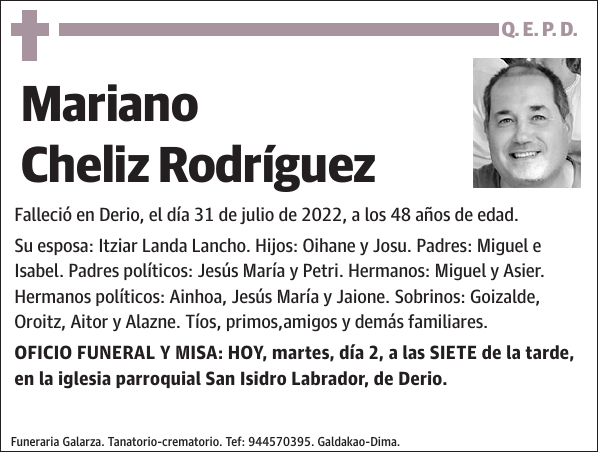 Se haya publicado la esquela en el sitio del propio tanatoria, o bien funeraria, o en un periódico o medio de comunicación, aquí podrás hallarla con comodidad con total sencillez. Todas y cada una de las necrológicas de Derio están libres en esta sección, y siempre y en toda circunstancia puedes utilizar nuestro buscador.