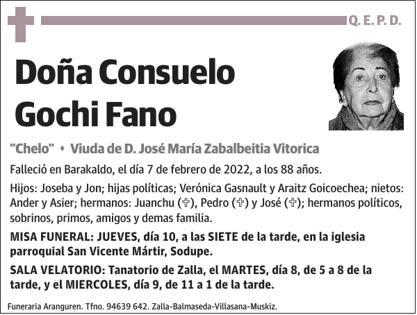 Esquelas en Güeñes : Ultimas defunciones de HOY